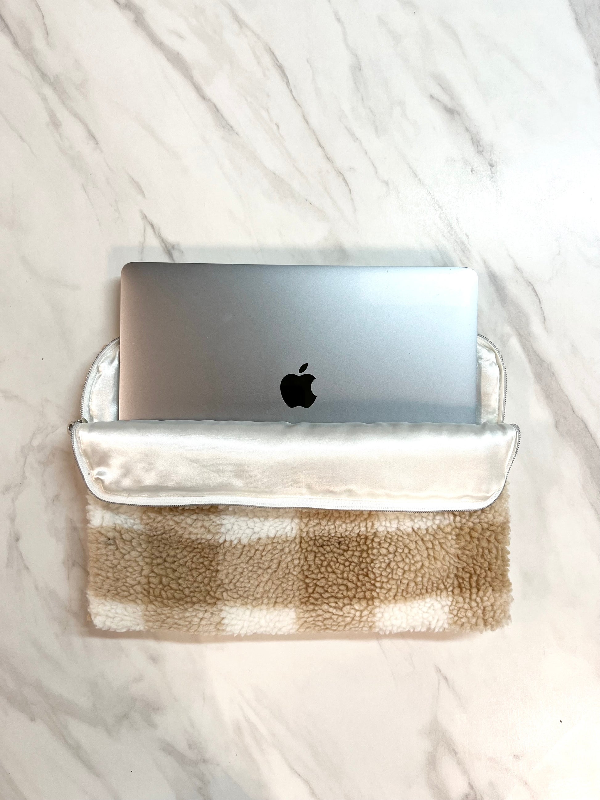Our fluffy cocoon fleece computer sleeve is the perfect accessory for carrying your device when traveling, to the cafe or to the office.