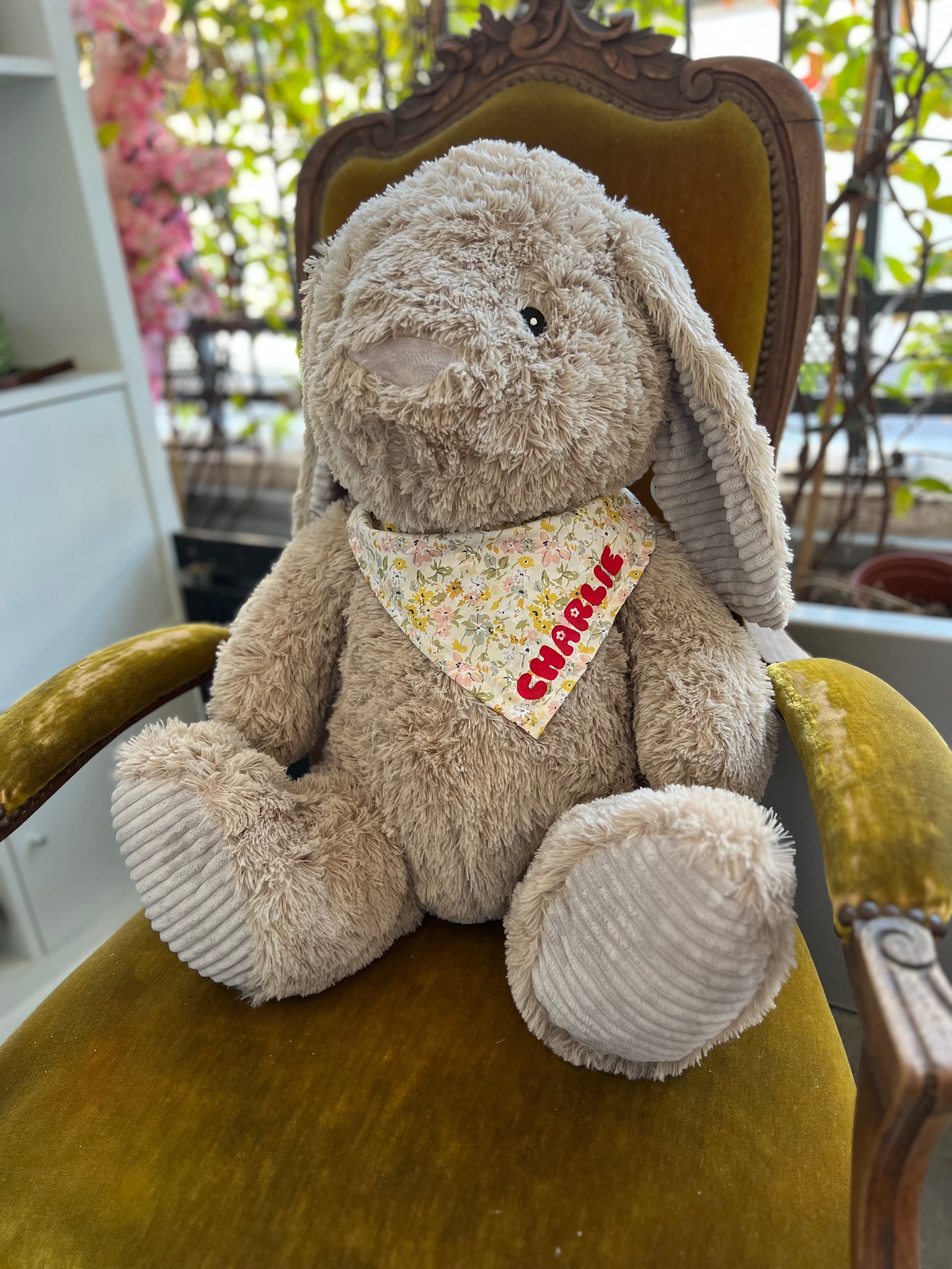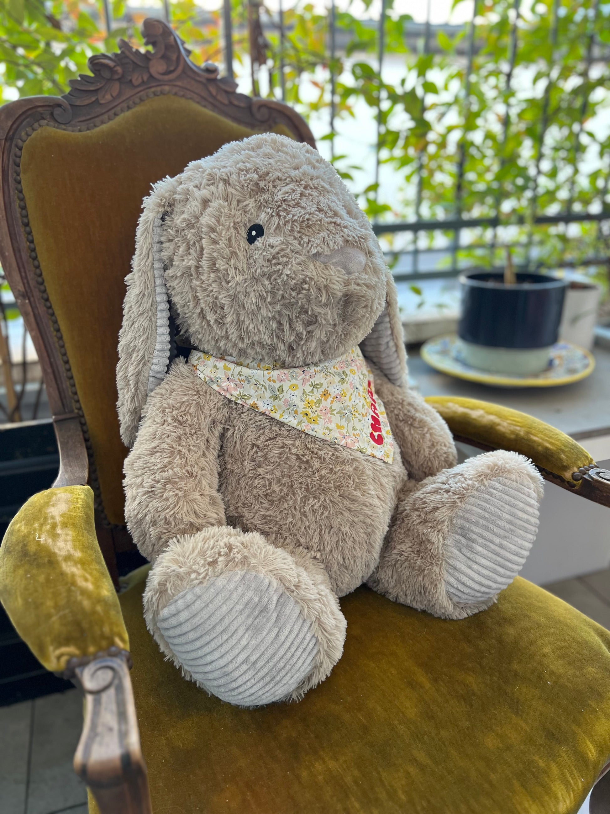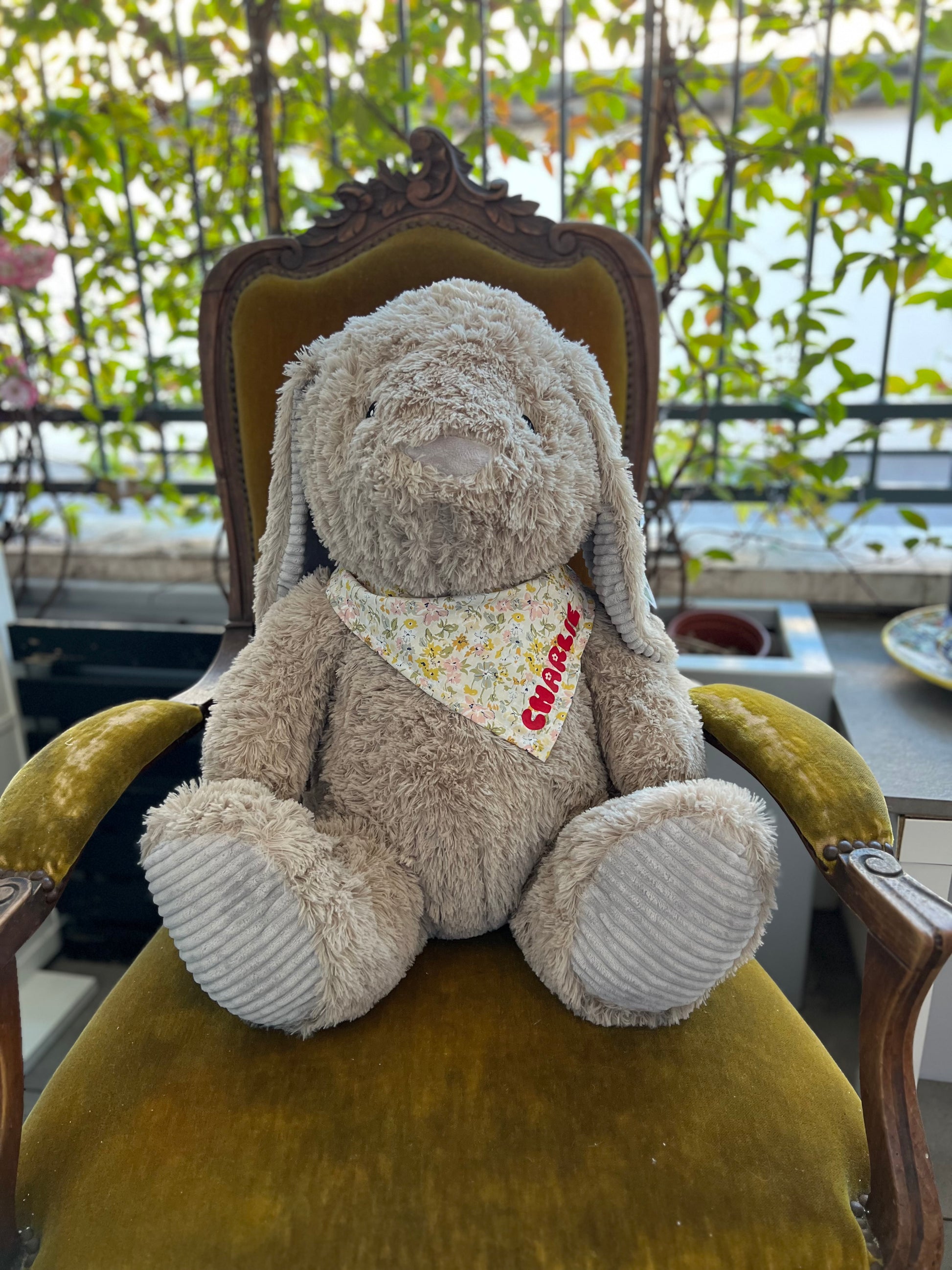 Made with ultra-soft materials and dressed in a hand-sewn floral scarf, each bunny is unique and ready to become the favorite cuddly toy of little ones (and adults).