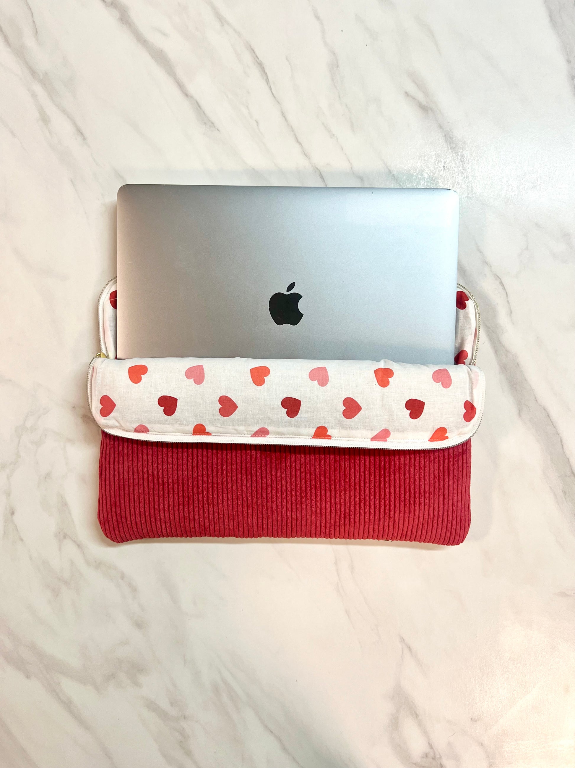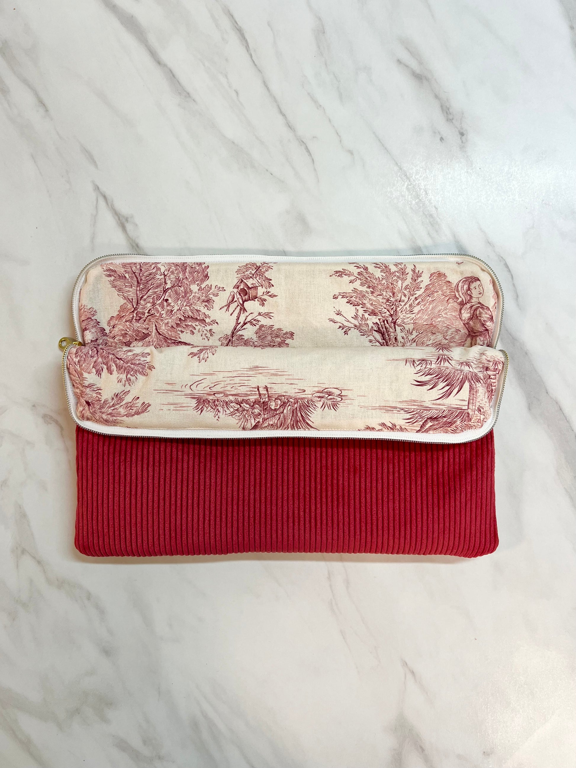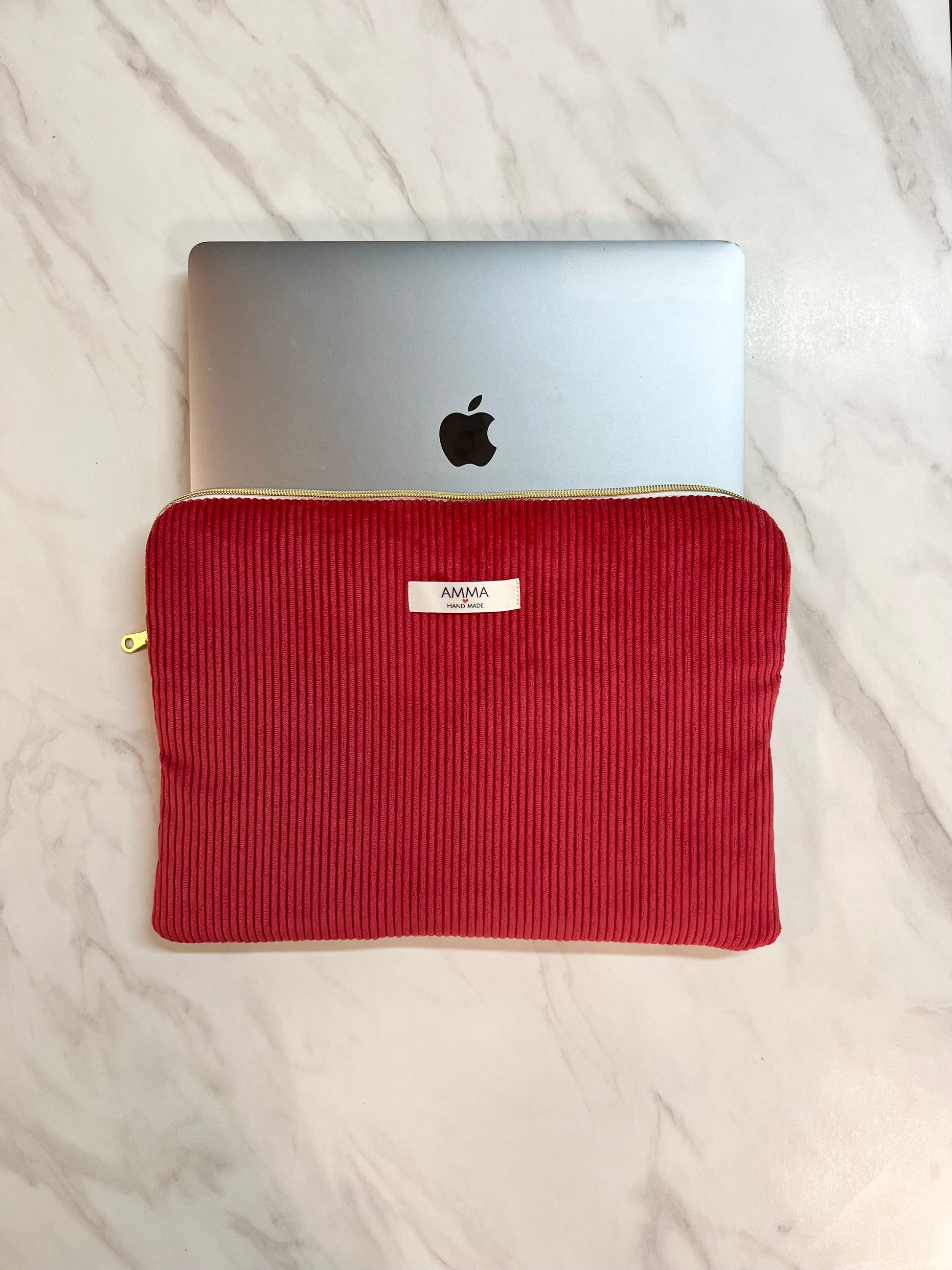 La housse d'ordinateur en velours côtelé couleur rouge est l'accessoire idéal.