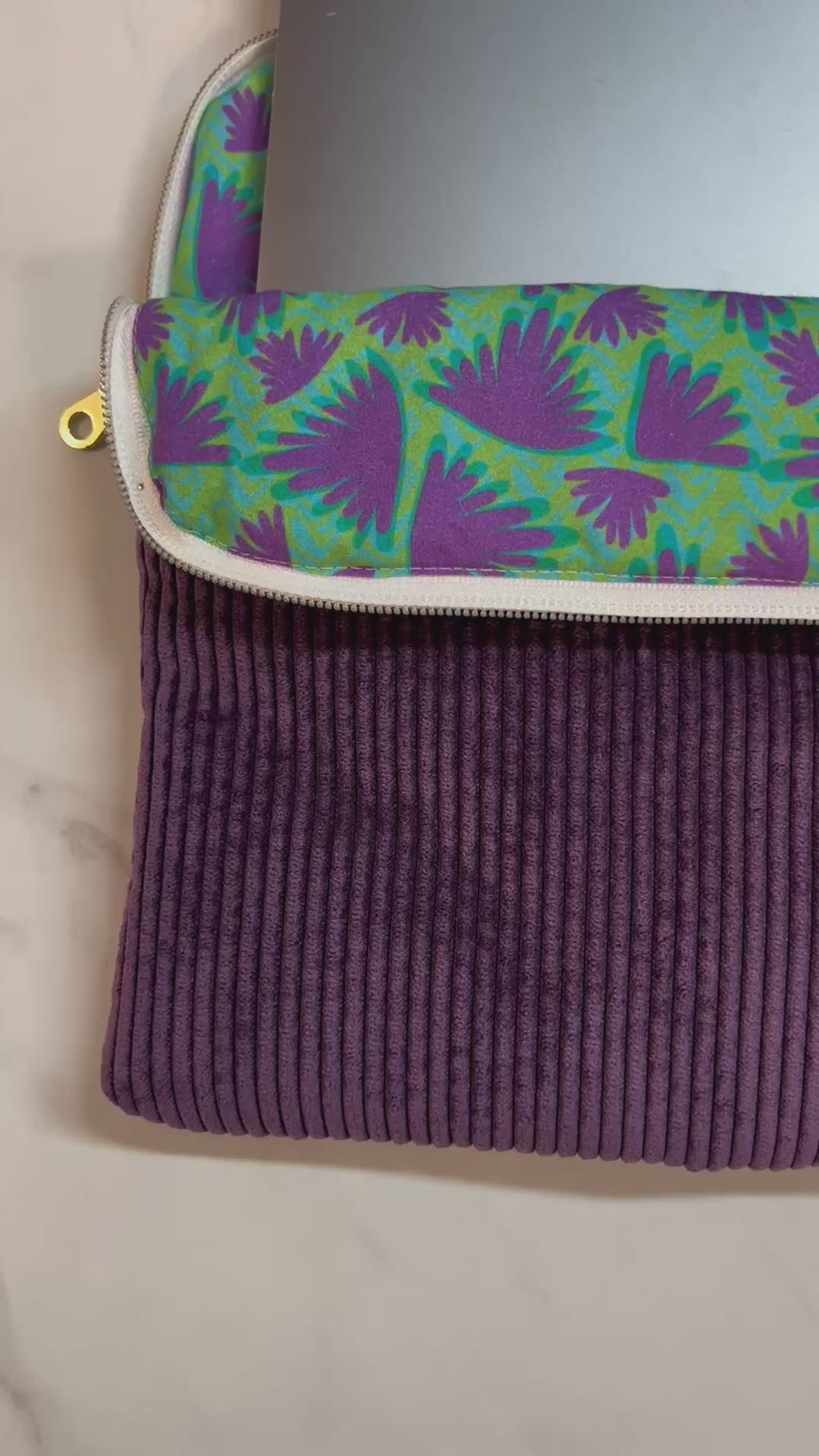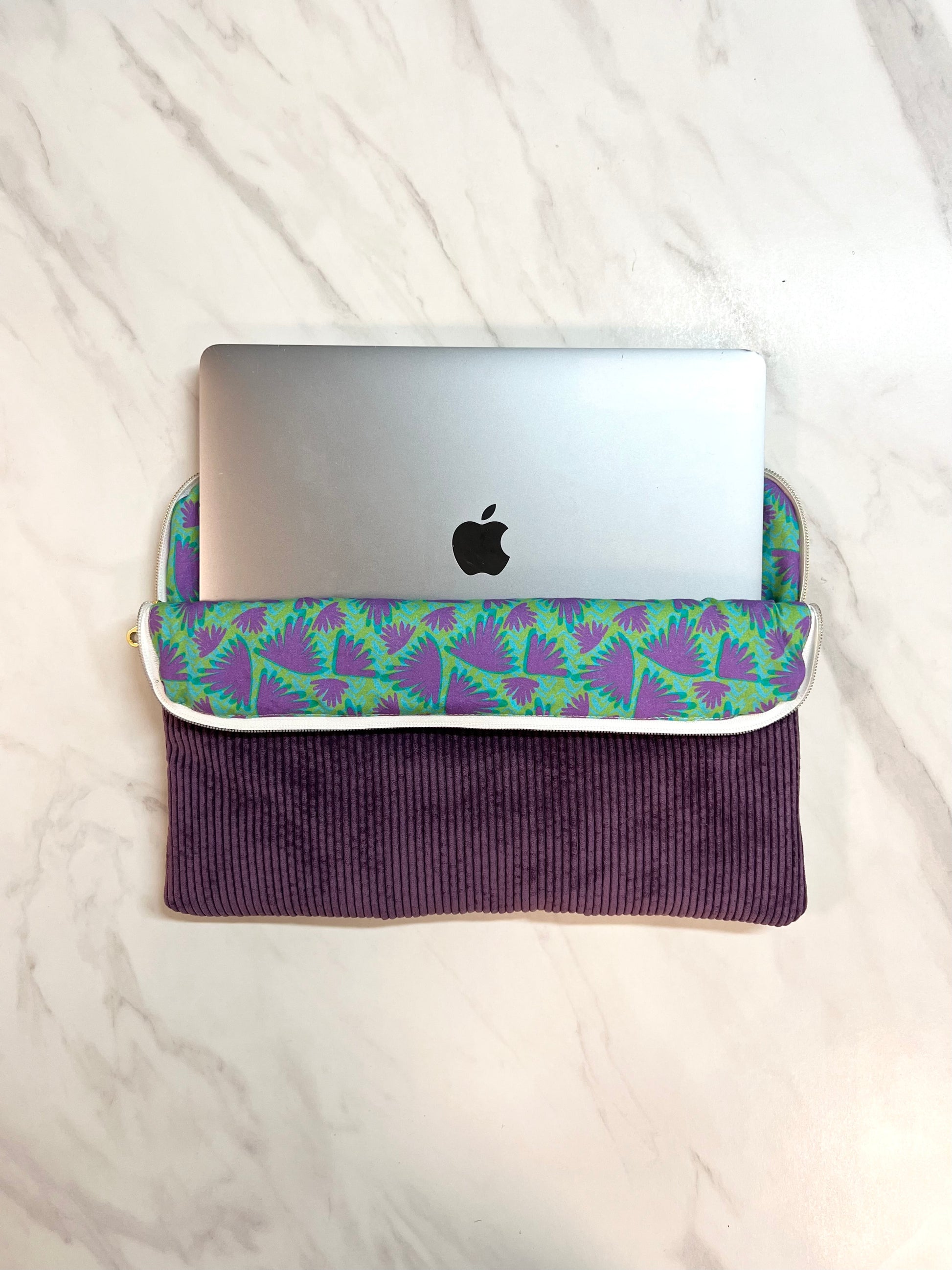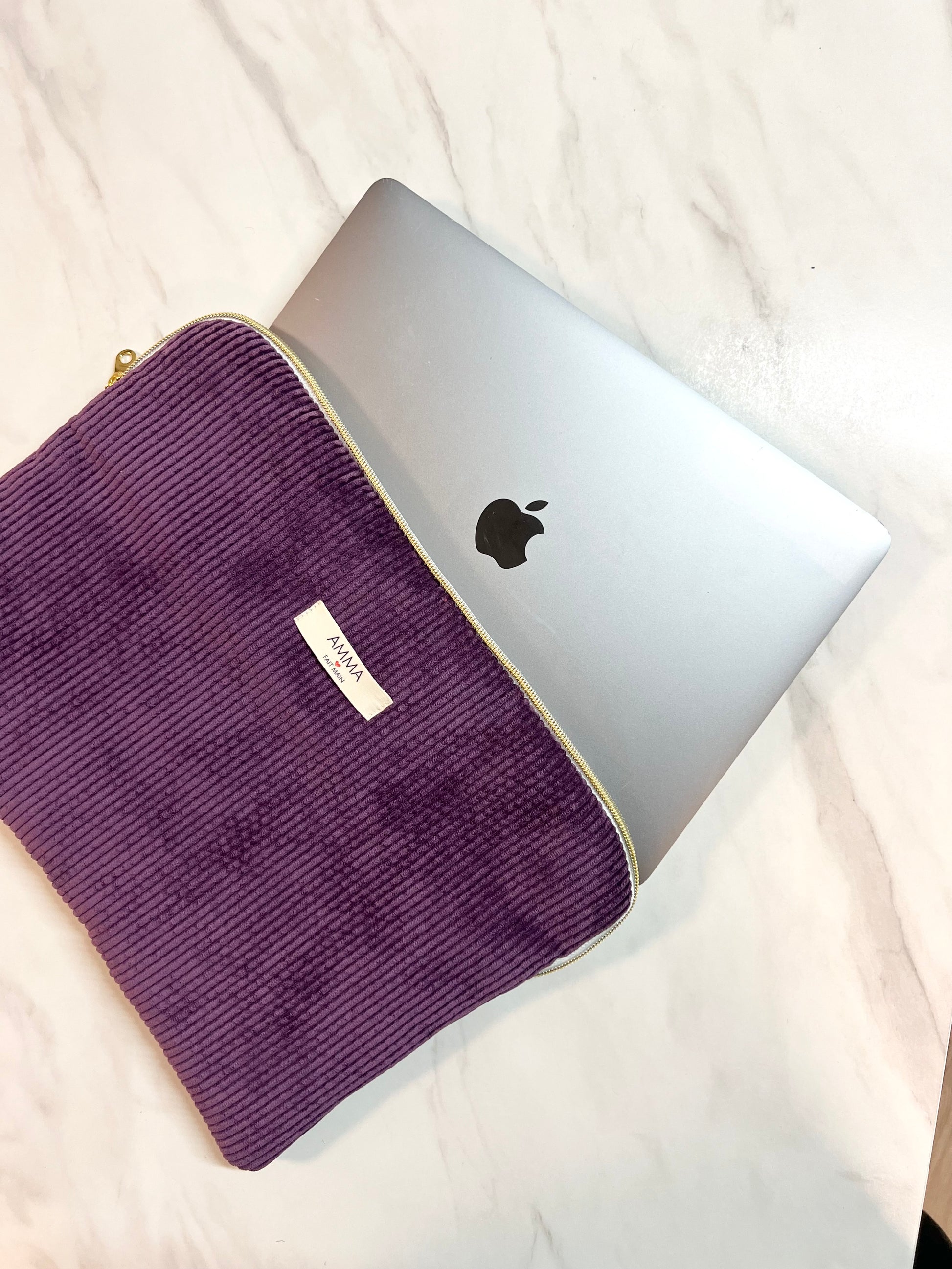 Notre housse d'ordinateur velours côtelé prune est l'accessoire idéal pour transporter votre appareil lors de vos voyages, au café ou au bureau.